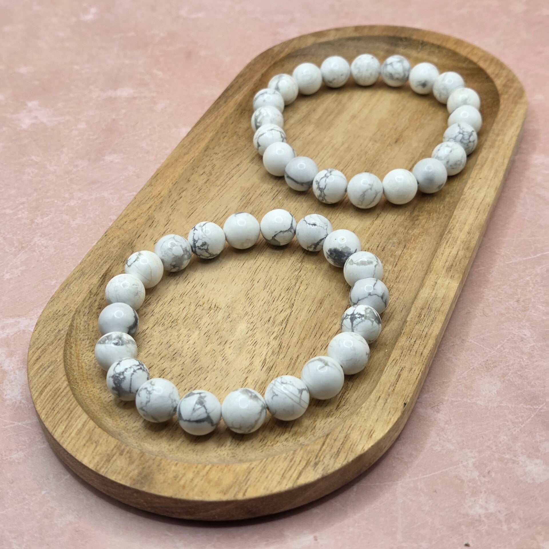 De Howliet armband is een uniek en betekenisvol sieraad. De witte kralen met subtiele grijze aders geven het sieraad een elegante en rustige uitstraling. Het is perfect om dagelijks te dragen of te combineren met andere sieraden. Dankzij de verfijnde look is het ook een bijzonder cadeau voor iemand die je dierbaar is, met een uitstraling die zowel eenvoudig als bijzonder voelt.