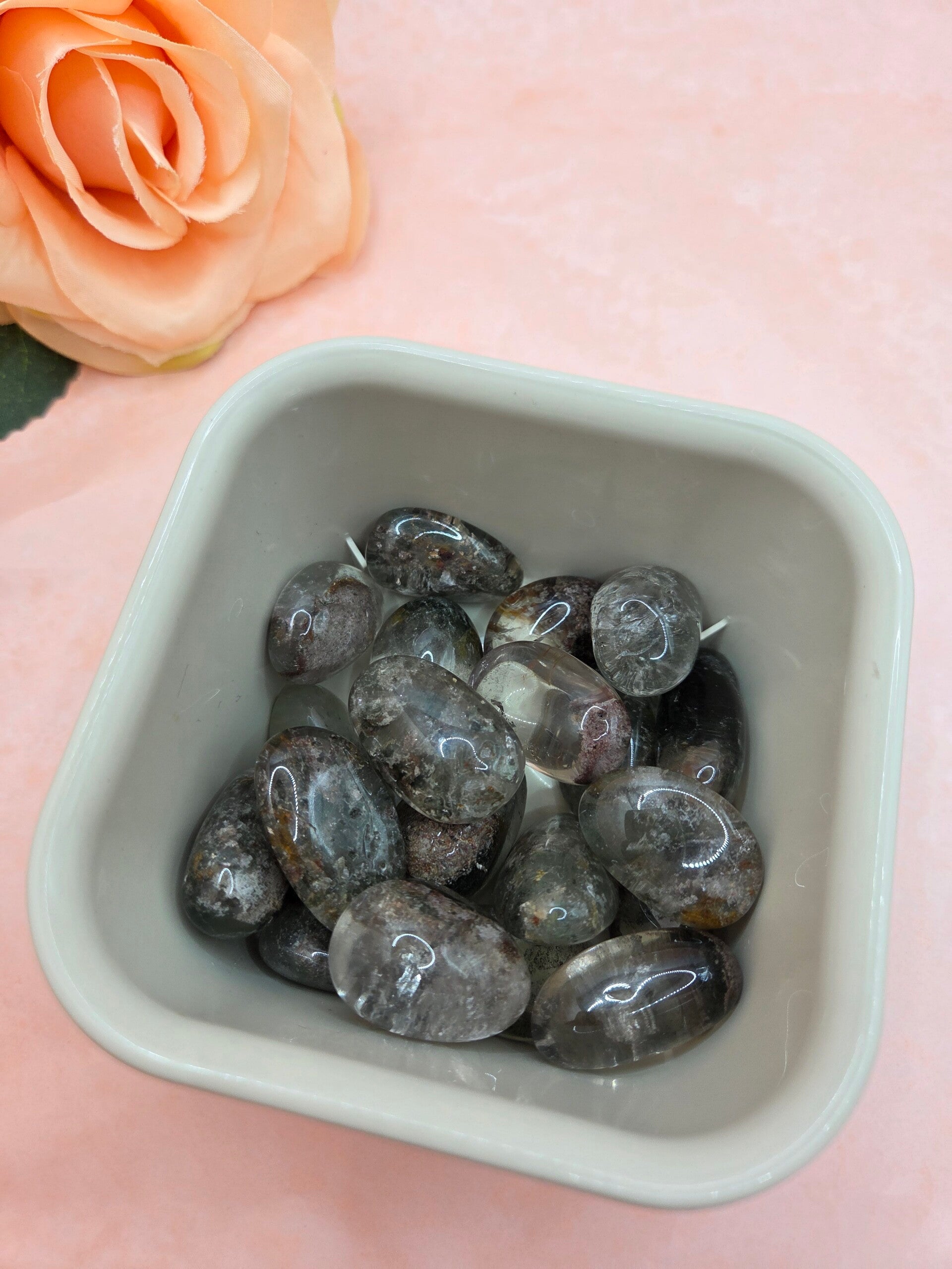 Deze Lodoliet trommelsteen is een unieke en kleurrijke toevoeging aan je edelstenencollectie. Met een gemiddelde afmeting van 2-2,5 cm en een doorzichtige basis met diverse minerale insluitsels, heeft elke steen een eigen natuurlijke uitstraling en patroon.