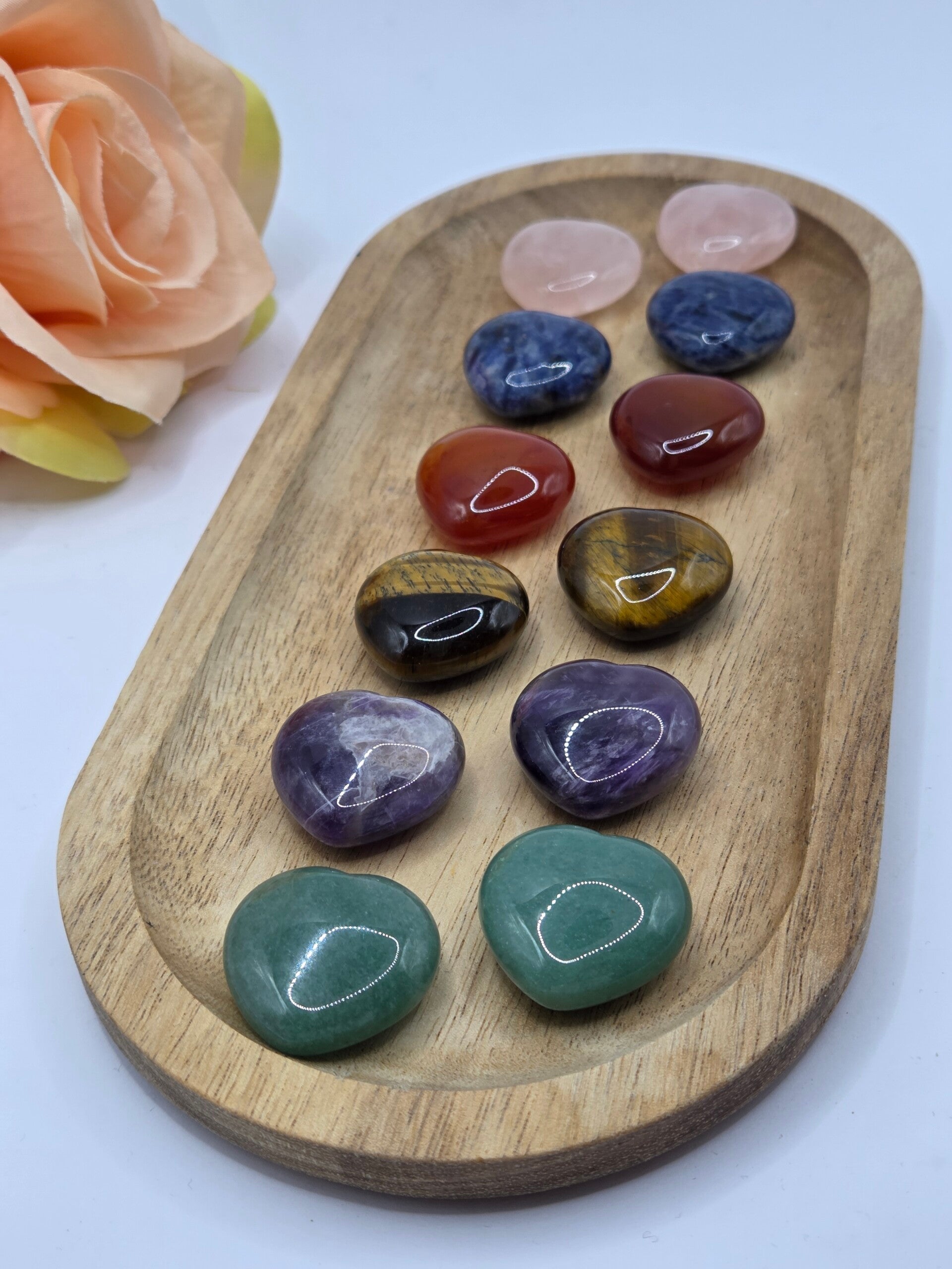 Ontdek onze collectie edelsteen hartjes, met zorg geselecteerd voor hun kwaliteit, energie en unieke uitstraling. Edelsteen hartjes zijn geliefd als liefdessymbool, krachtsteen, trooststeen of betekenisvol cadeau. Elke edelsteen heeft zijn eigen werking en karakter, waardoor je altijd een hartje vindt dat perfect past bij jouw intenties.