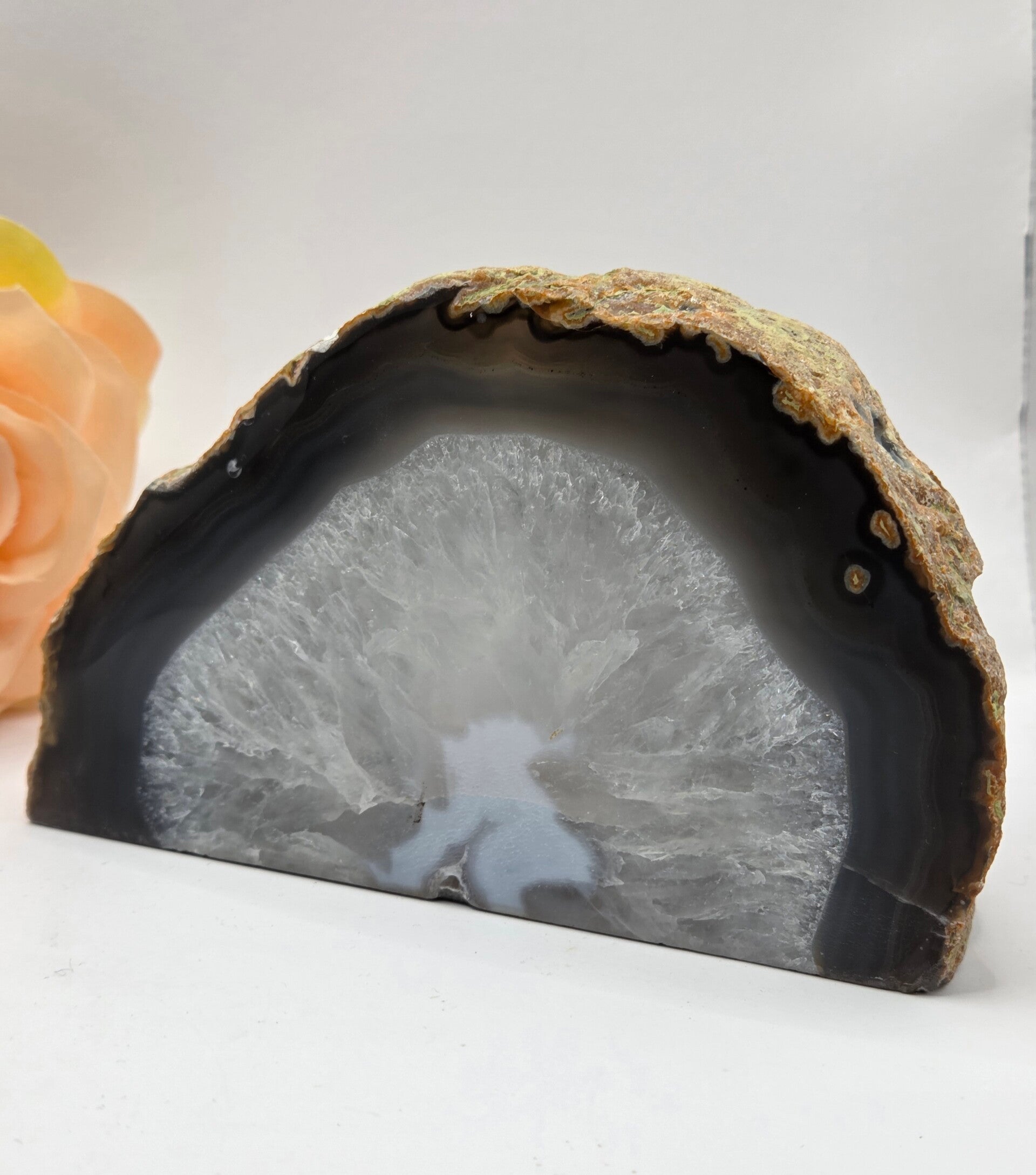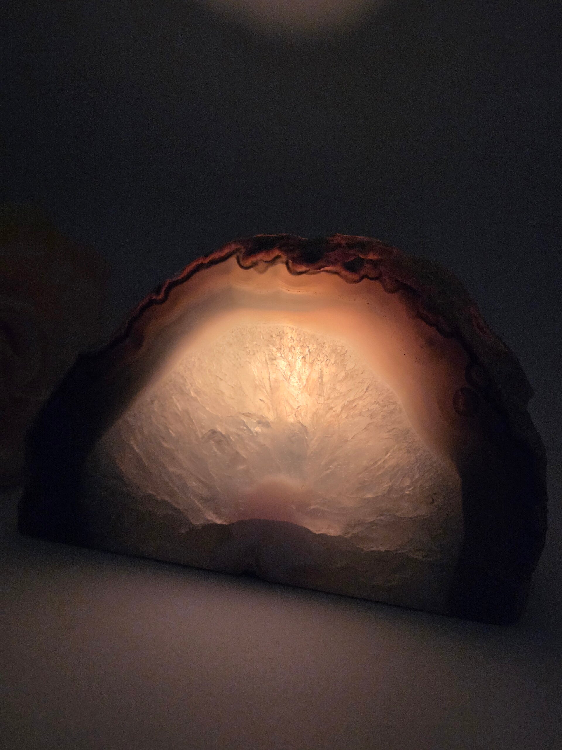 Breng natuurlijke sfeer en rust in huis met deze prachtige Agaat theelichthouder. Elk stuk is uniek, met zijn eigen kristalstructuur en kleurpatroon. Wanneer je een theelichtje aansteekt, schijnt het warme licht subtiel door het edelsteenoppervlak, wat zorgt voor een rustgevende, sfeervolle gloed.