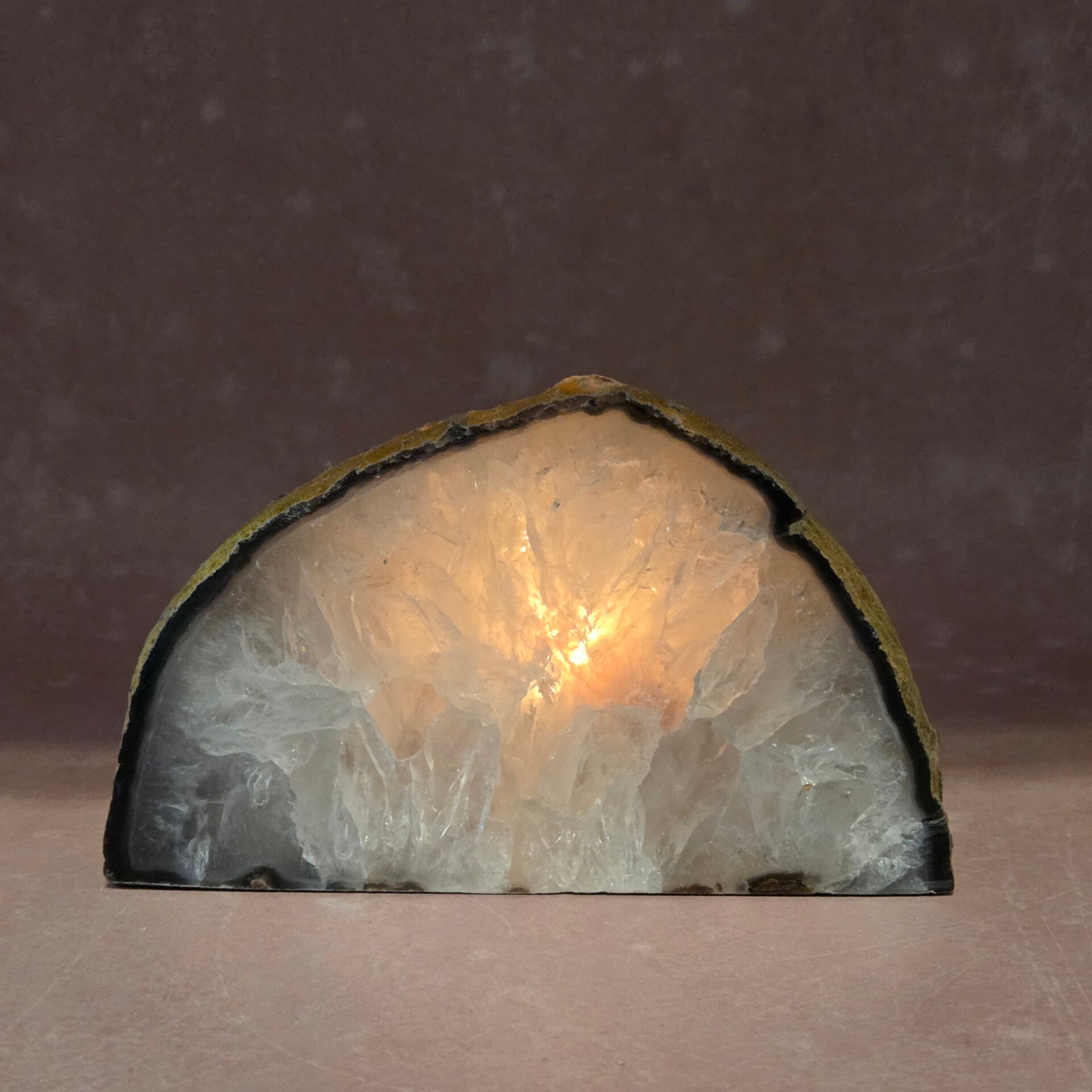 Breng natuurlijke sfeer en rust in huis met deze prachtige Agaat waxinelichthouder. Elk stuk is uniek, met zijn eigen kristalstructuur en kleurpatroon. Wanneer je een waxinelichtje aansteekt, schijnt het warme licht subtiel door het edelsteenoppervlak, wat zorgt voor een rustgevende, sfeervolle gloed.