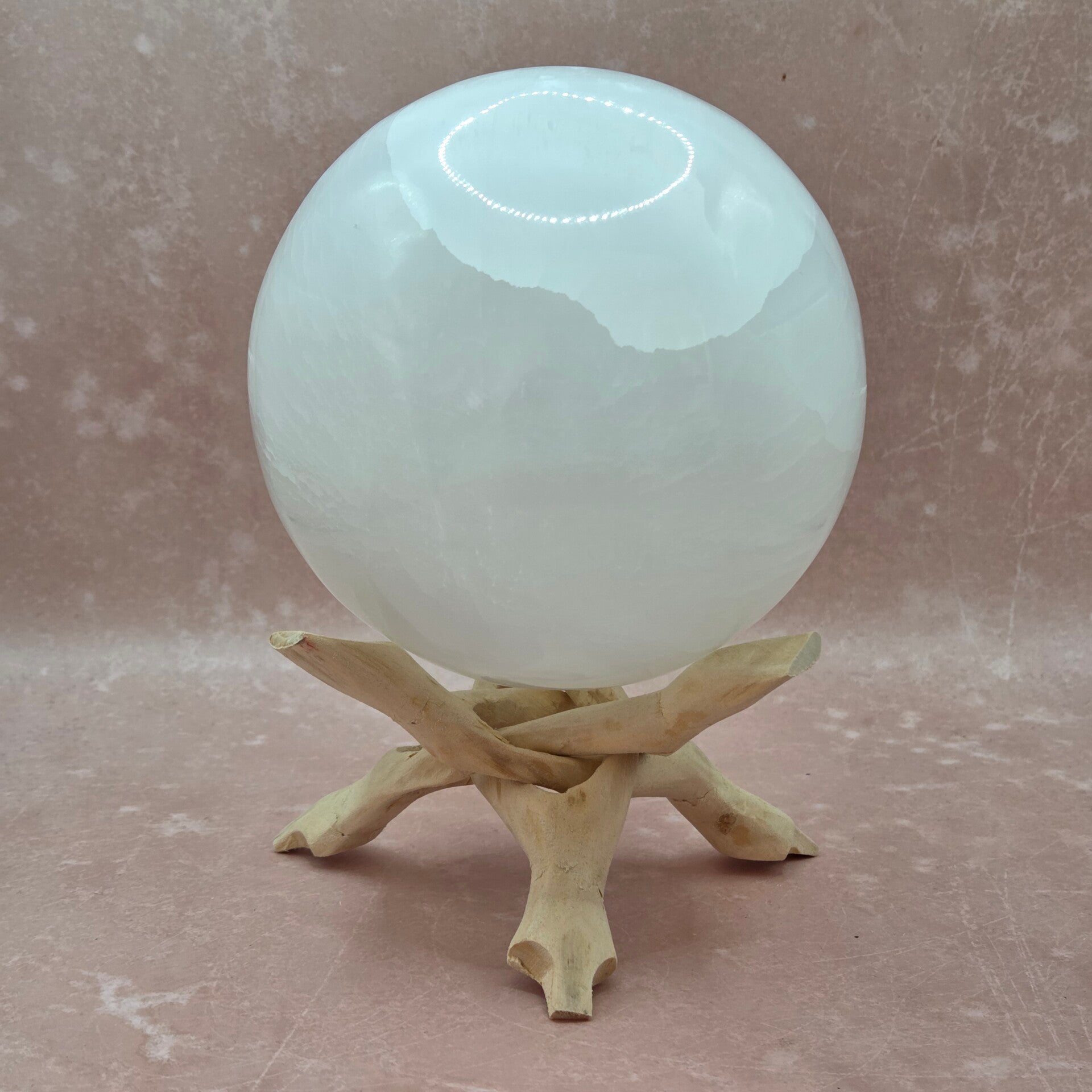Deze mooie Seleniet bol heeft een afmeting van 13 cm en komt uit Marokko. Met haar witte kleur en glans is deze edelstenen bol een stijlvol en rustgevend decoratiestuk voor elk interieur.